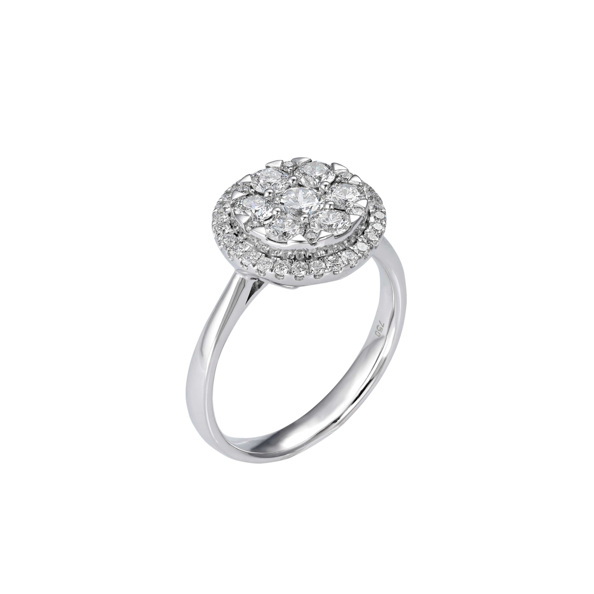 Diamond Hexagon Shape Cluster Solitaire Engagement Ring in 18K White Gold