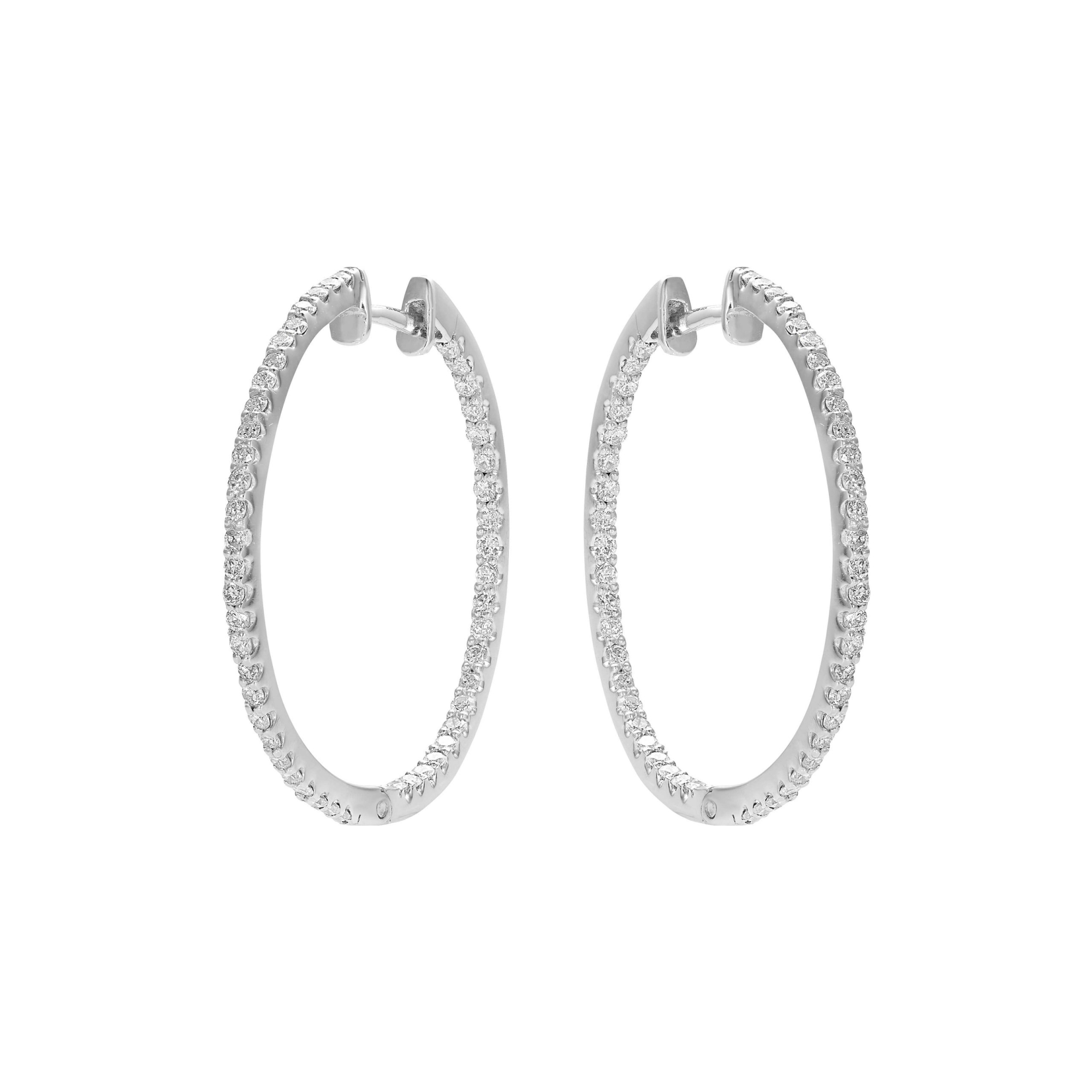 This Diamond Hoop Earrings represents love and a symbol of Elegance and pure romanticism- the earrings are set with a front and Back line diamond weight 0.53 cts Diamond on 18K White Gold.