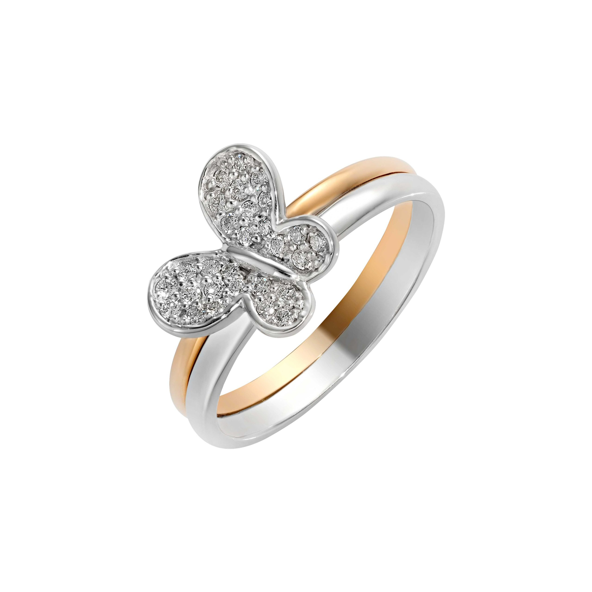 Diamond Butterfly Ring in 18K White and Rose Gold