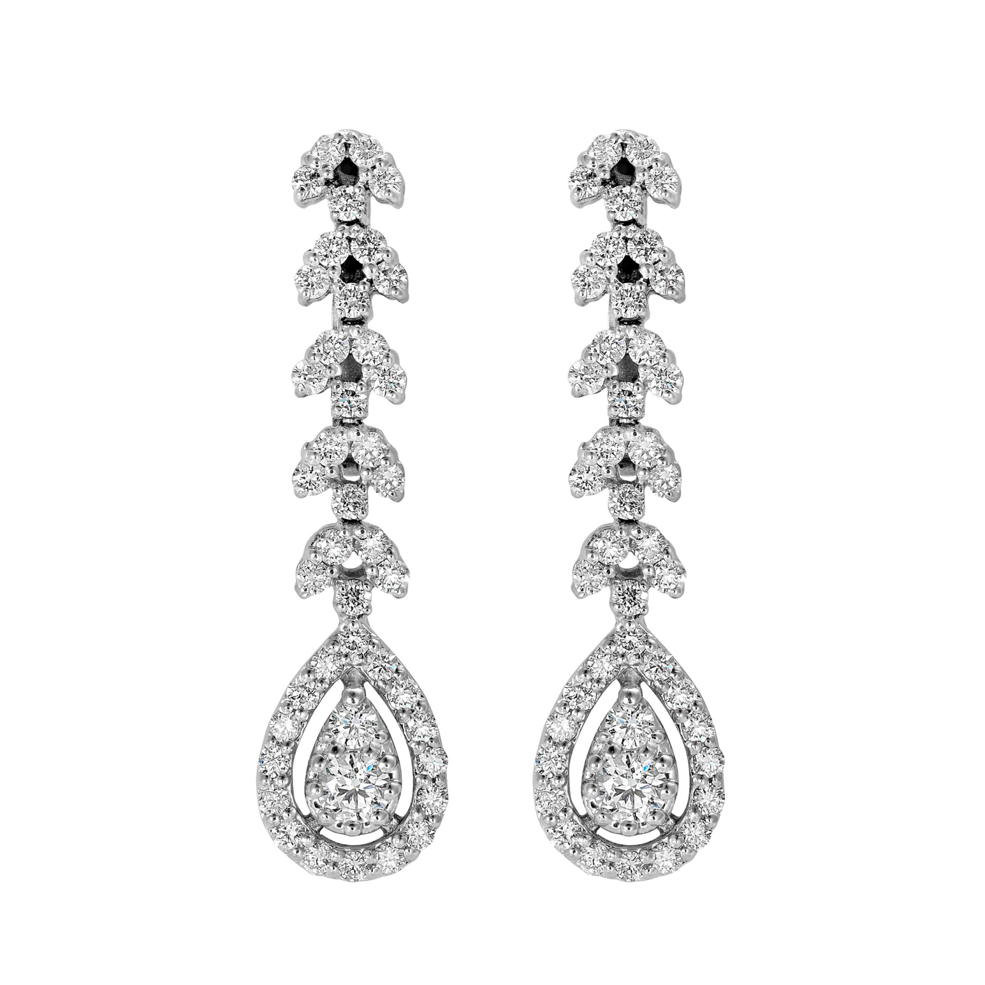 This Diamond Flowing drop earrings represent a sensual touch of mystery and a way of expressing a lot through less. It is a timeless piece of natural flow of white Diamonds on 18k White Gold.