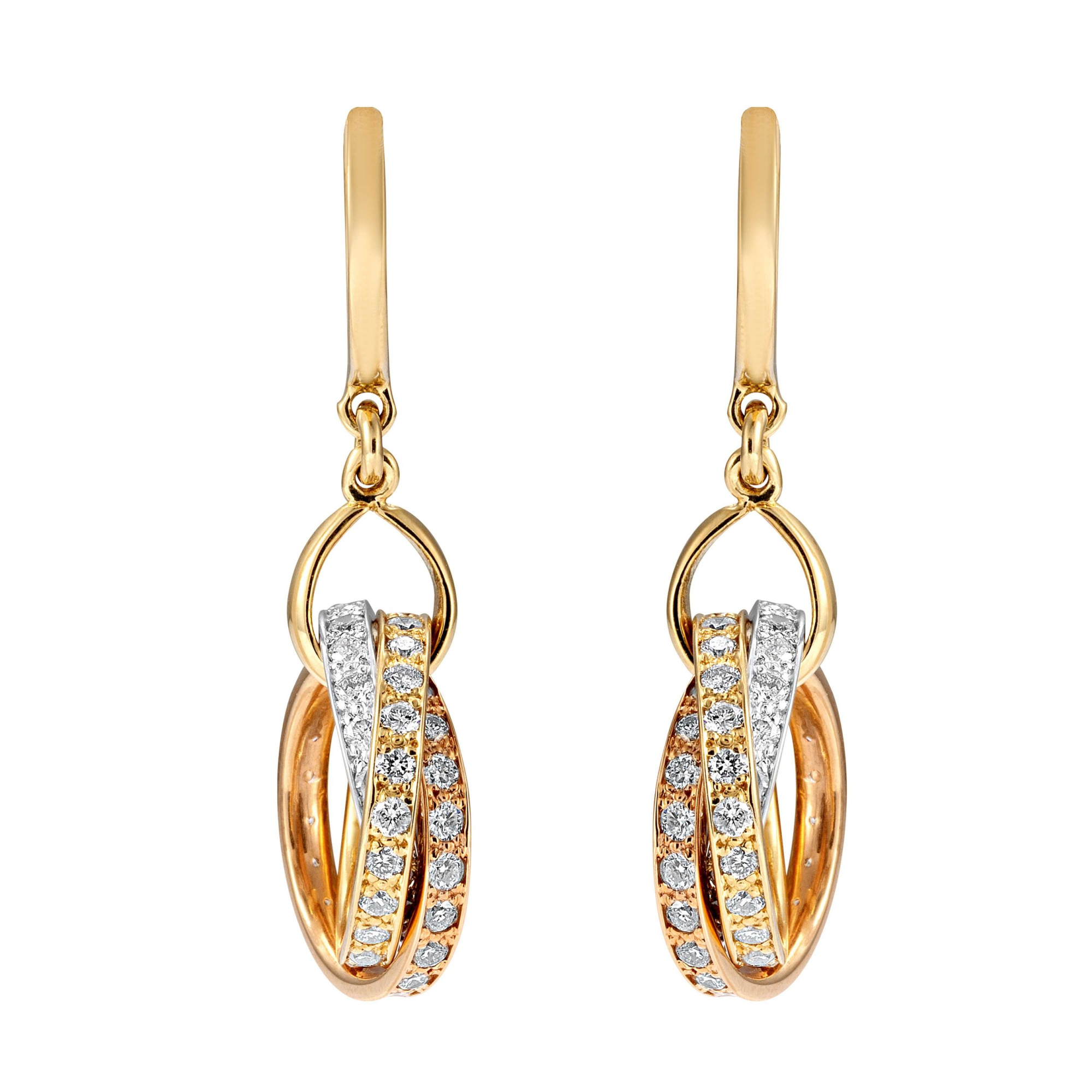 Diamond drop Trinity Earrings on 18K White, Yellow and Rose Gold