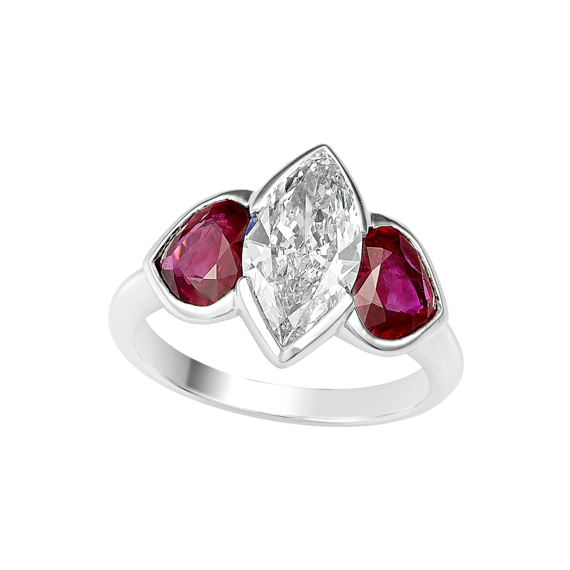 Design Style: Classic Fancy Marquise Diamond Ring with Ruby Stones