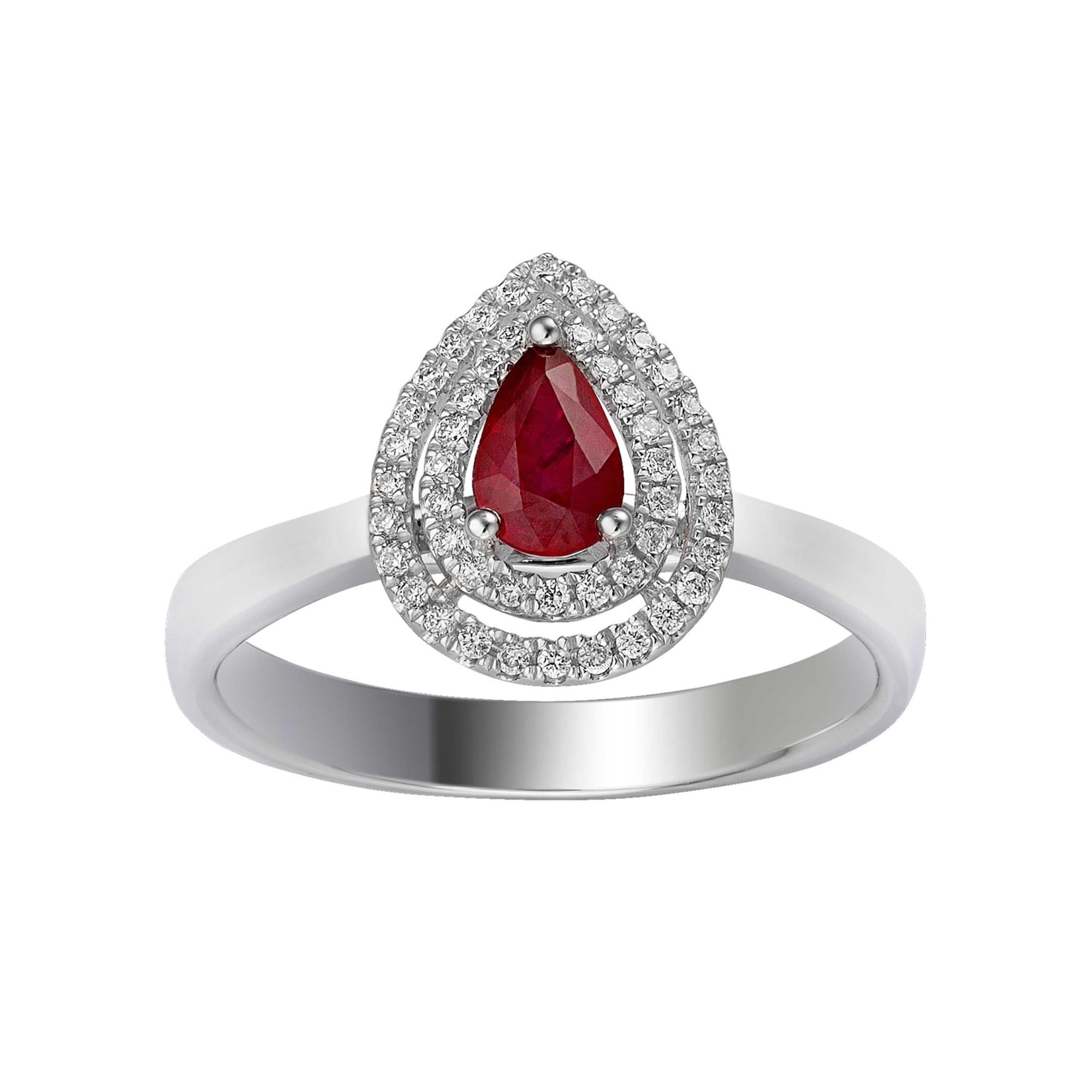Marquise Diamond Engagement Ring with Ruby Stones in 18K White Gold