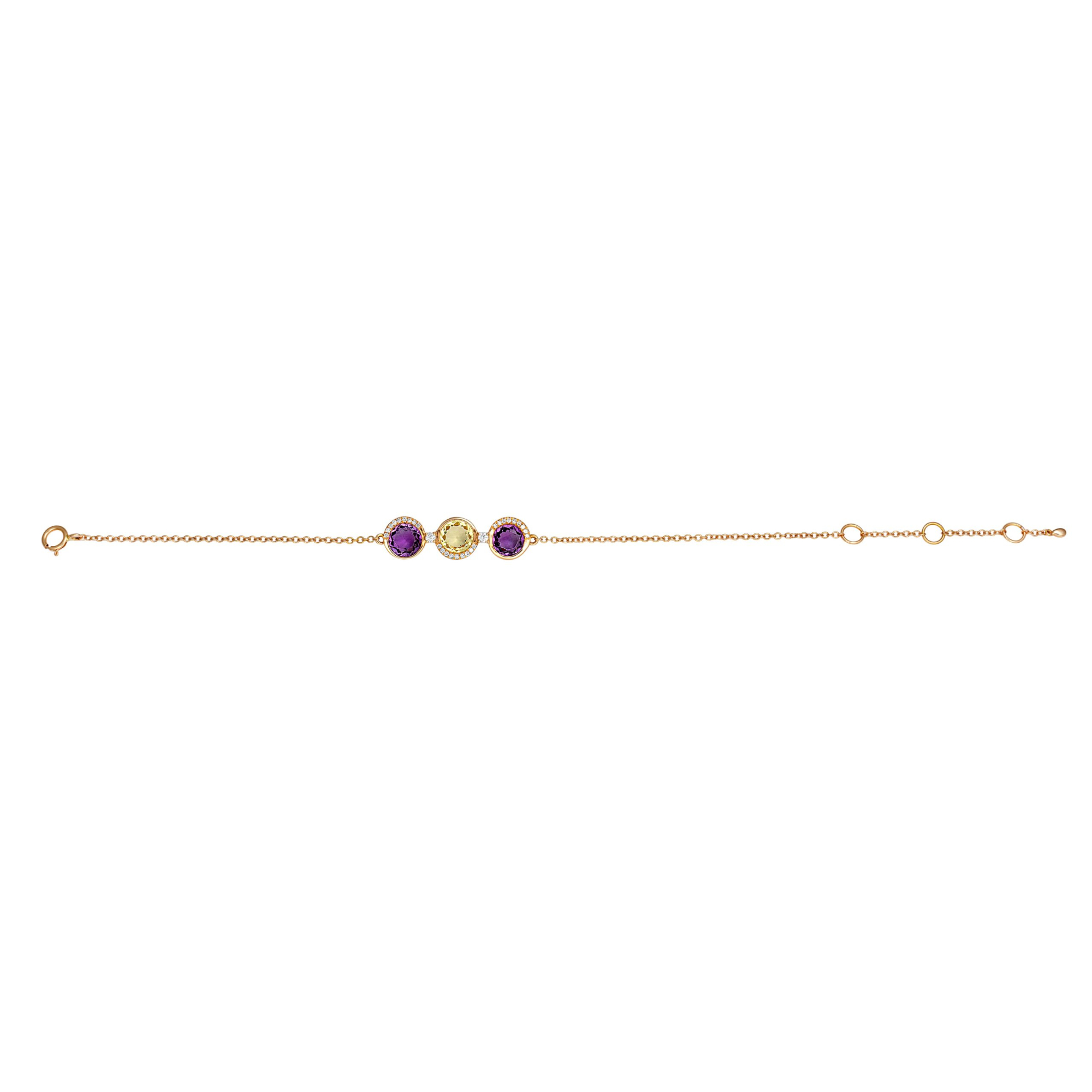 Diamond Bracelet Set Multi-Color Natural Stones in 18K Rose Gold