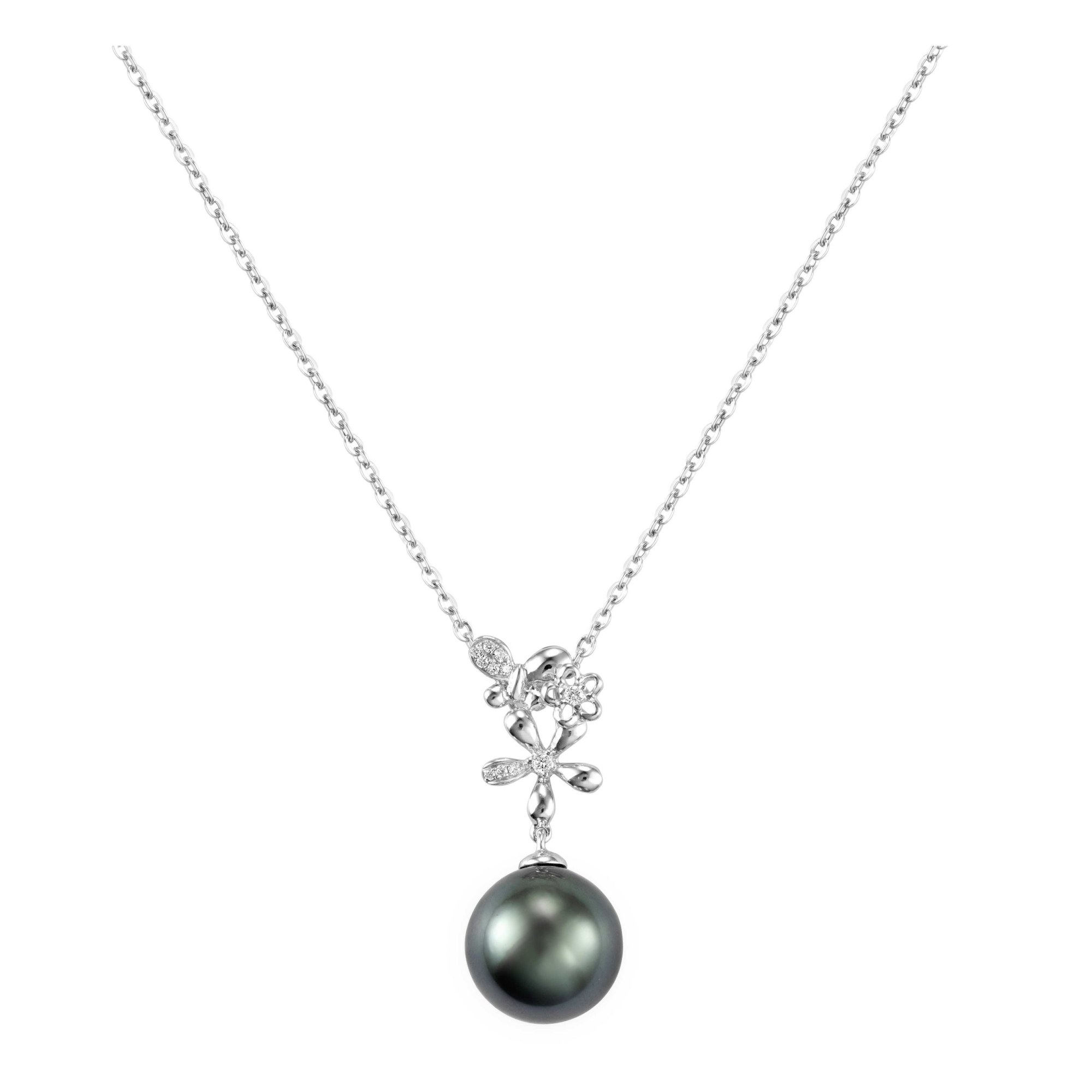 Diamond Butterfly Key Pendant in 18K White Gold