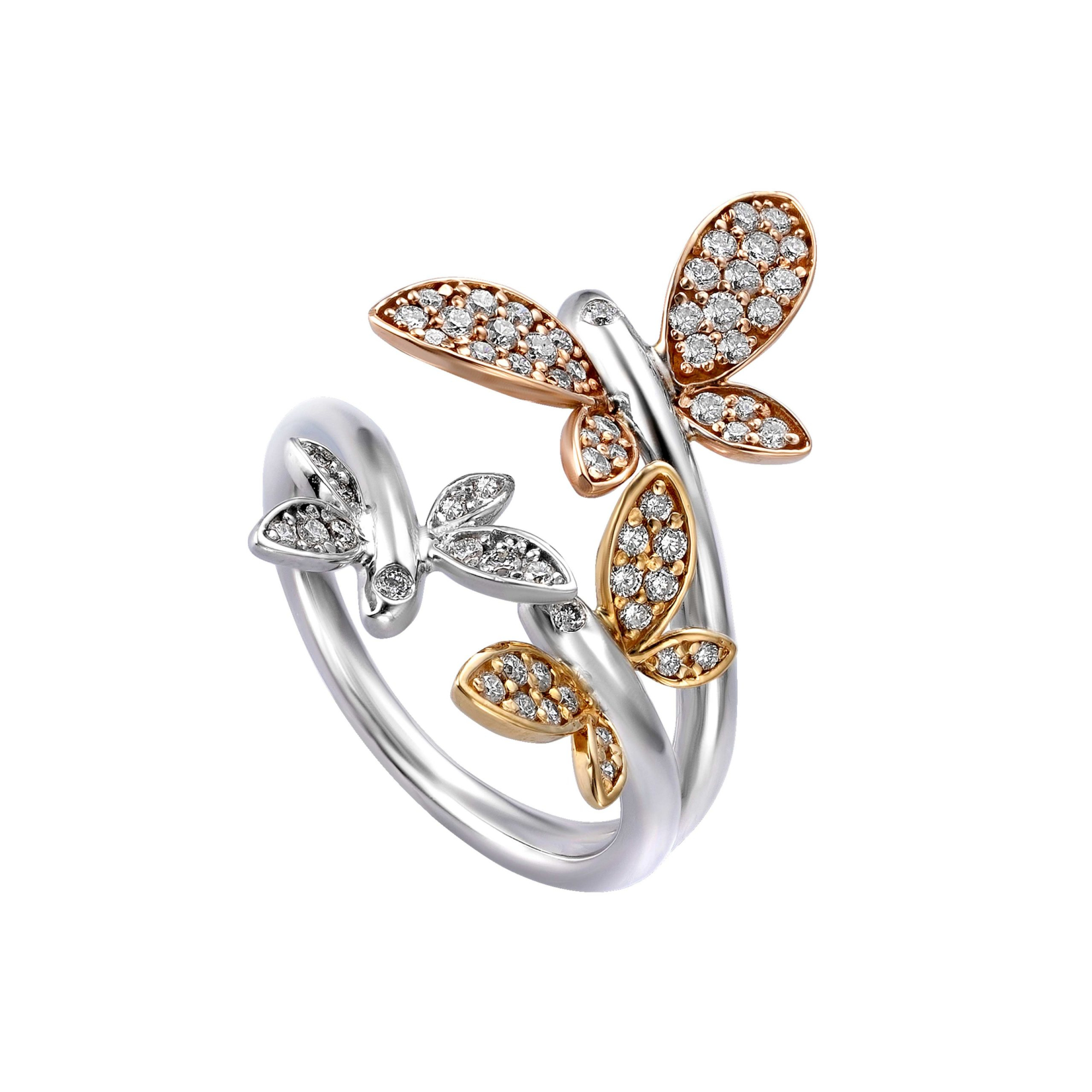 Diamond Butterly Ring in 18K White and Rose Gold
